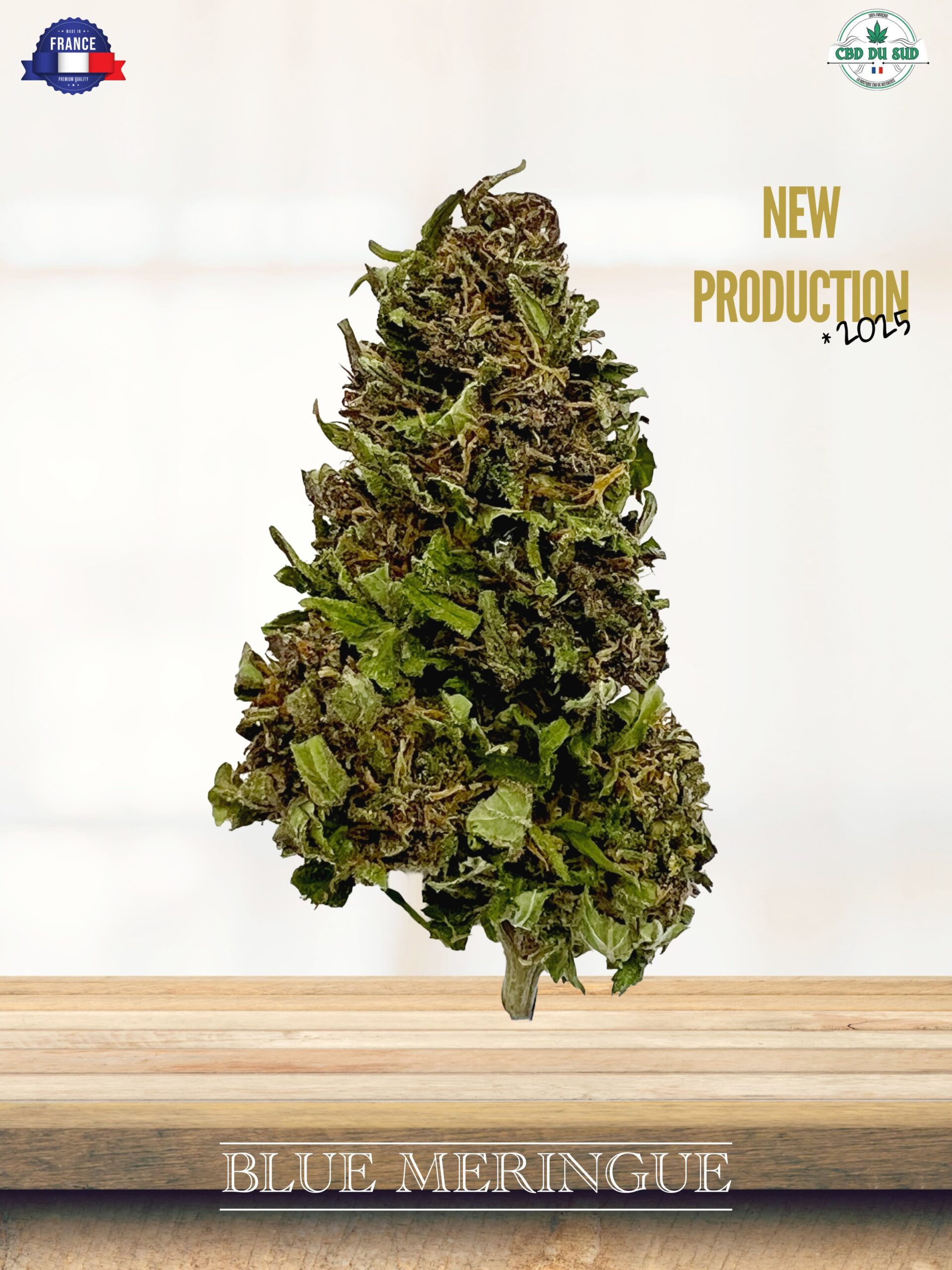 La Blue Meringue, une fleur de CBD bio premium, cultivée en extérieur en Ardèche.